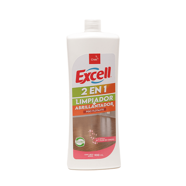 Limpiador + abrillantador para pisos flotantesEnvase 900cc Flor de cerezosLimpia, da brillo y fragancia, gracias a su poderosa fórmula simplifica el cuidado de pisos flotantesInstrucciones de Uso:Asegúrese que su piso se encuentra libre de polvo barriendo o aspirando previamente. Se recomienda el uso de Trapero Microfibra Excell.Humecte y aplique el producto directamente en la mopa o trapero a utilizar. No es necesario diluir.Aplique sobre el piso siempre en un solo sentido y deje secar (sin transitar).De ser necesario, para un mejor brillo: aplique una segunda capa.Se recomienda utilizar el Removedor de Abrillantador Excell cada seis meses o cuando el piso se vuelva opacoPrecauciones:Mantenga fuera del alcance de los niñosEn caso de contacto con los ojos lave inmediatamente con abundante agua.No ingerir. En caso de ingestión accidental no provoque el vómito y consulte inmediatamente al centro Toxicológico o al médico llevando el envase o rótulo del producto.En caso de inhalación excesiva traslade al afectado al aire fresco y ayude a la respiración si es necesario.Utilizar guantes para manipular el producto.