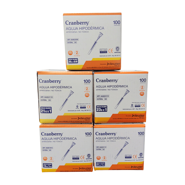 Aguja Hipodermica Cranberry 23G x 1 Caja 100 Unidades