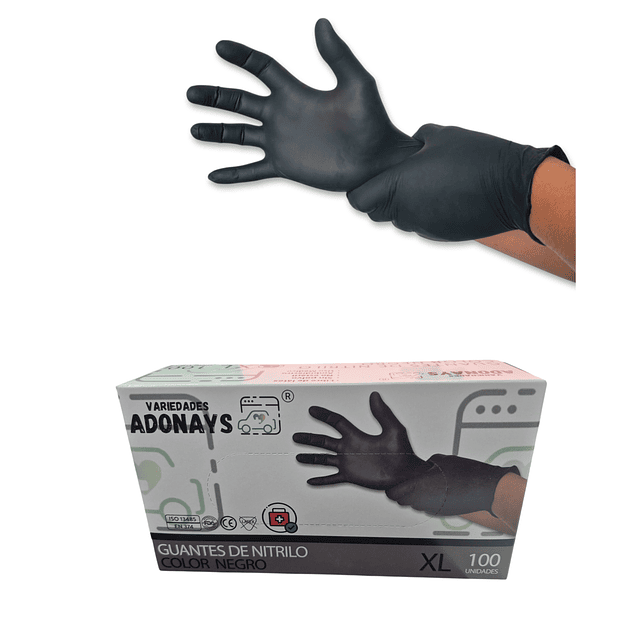 Guantes De Nitrilo Negro Adonays Caja De 100 Unidades